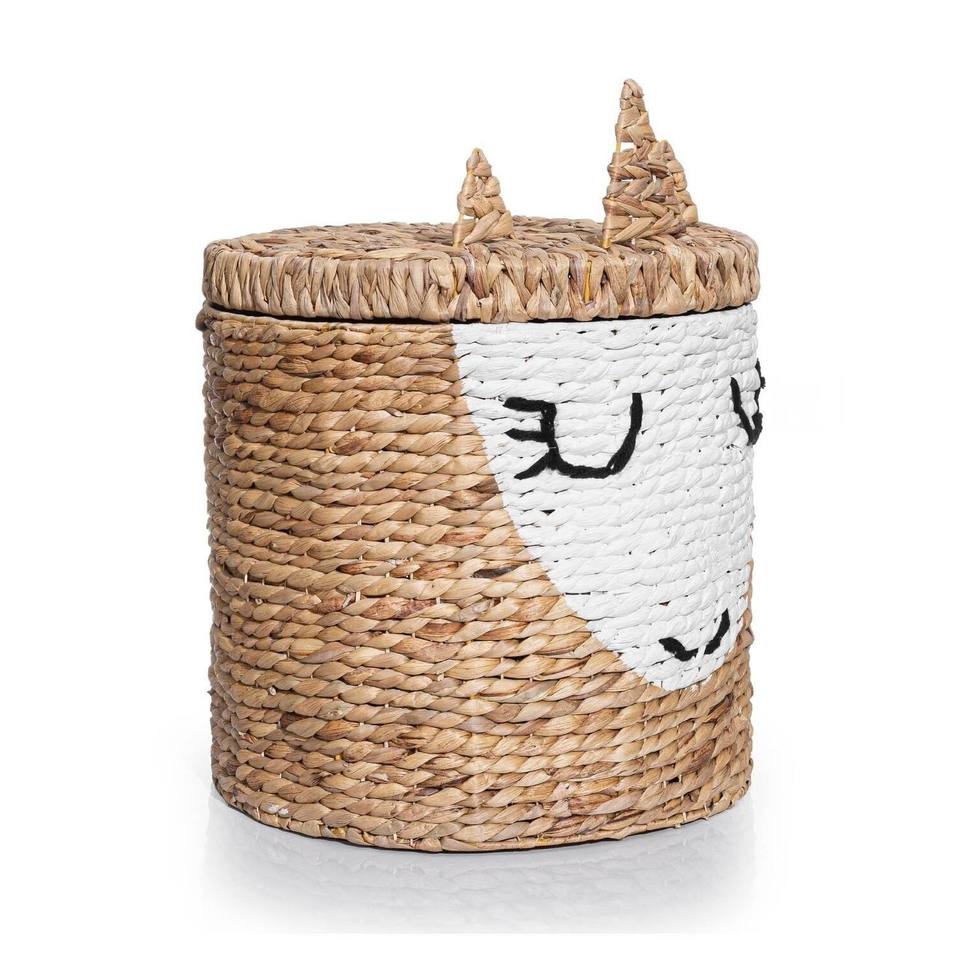 Hot Selling Kids Storage Animal Shaped Basket Handweave Water Hyacinth Unicon Shape Hamper Baskets with Lid