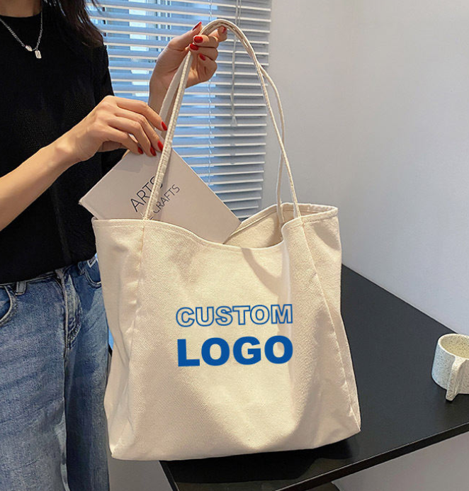 Hot selling personalized white cotton canvas zipper handbag shopping bag with inner pocket crossbody bag