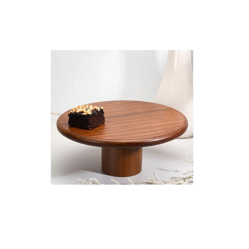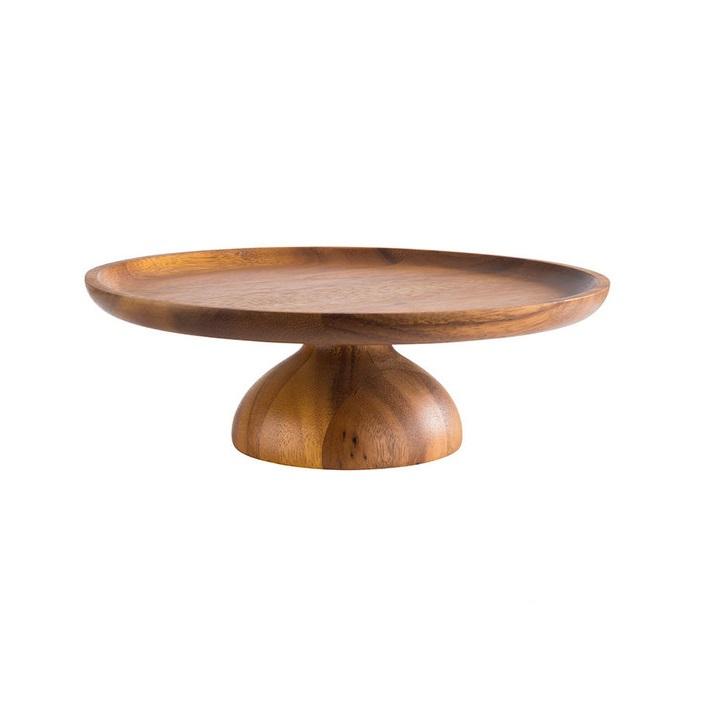 Hot selling round cake stand iron dessert platter with wooden top for cake serving black powder coated ideal size home decor