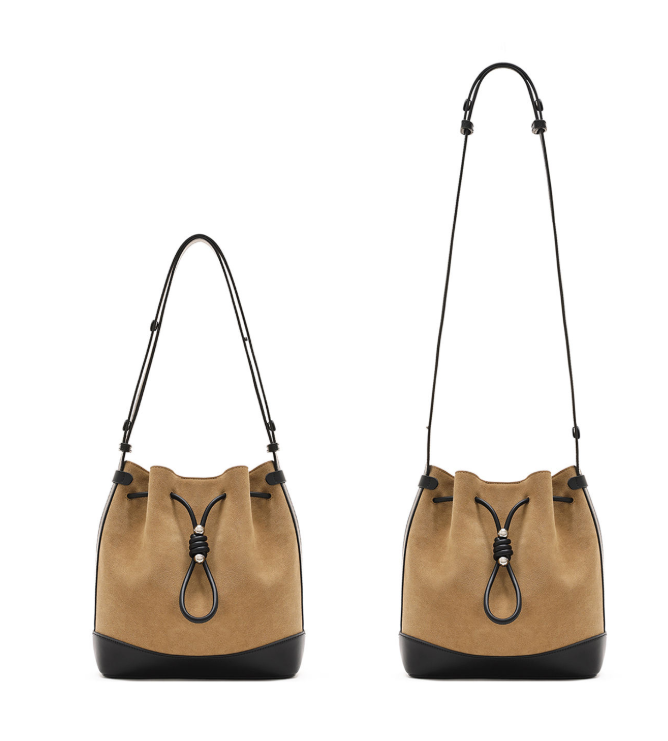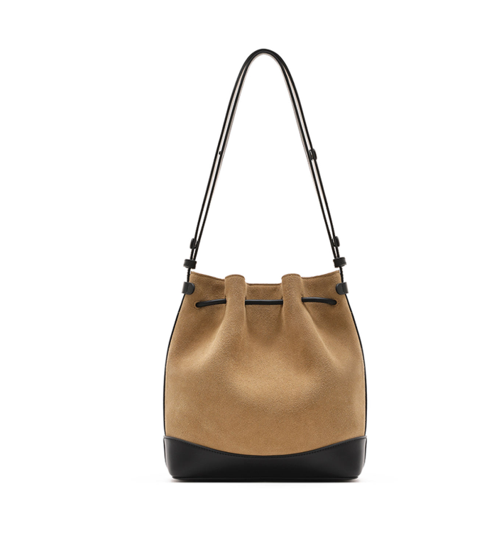 Hot selling women's retro drawstring crossbody bag, imitation suede leather bucket style luxury women's handbag tote bag
