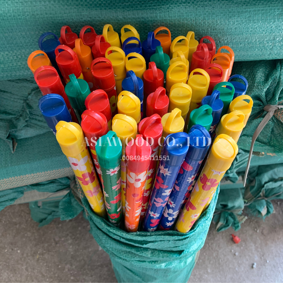 Hot Selling Wooden Broom Handle Mop Stick Flower Design PVC Coated Italian Thread Colorful Film Cheapest Price with Floor Brush