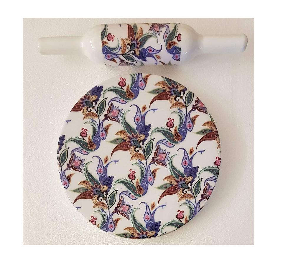 Indian White Heavy Base Marble Chakla With Wooden Belan Marble Roti Maker/Marble Rolling Board With Wooden Rolling