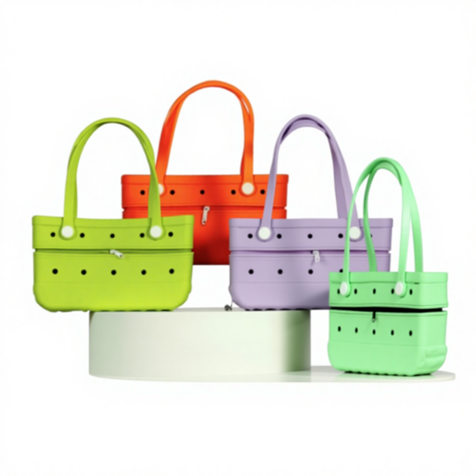 Hot summer unisex waterproof foldable portable rubber eva beach bag eva tote bag with zipper