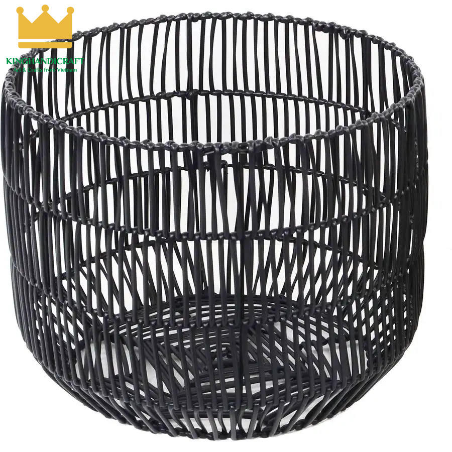 Hot Trend 2024 Black Rattan Woven Basket Wholesale Black Rattan Storage Basket with Handles Handmade From Vietnam