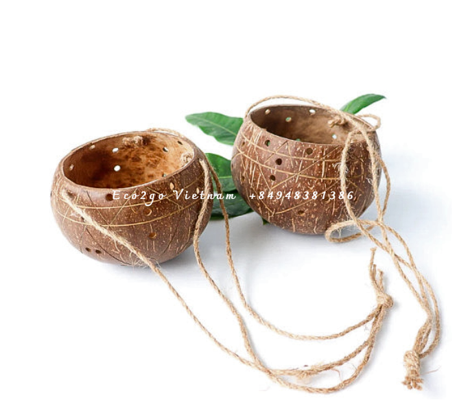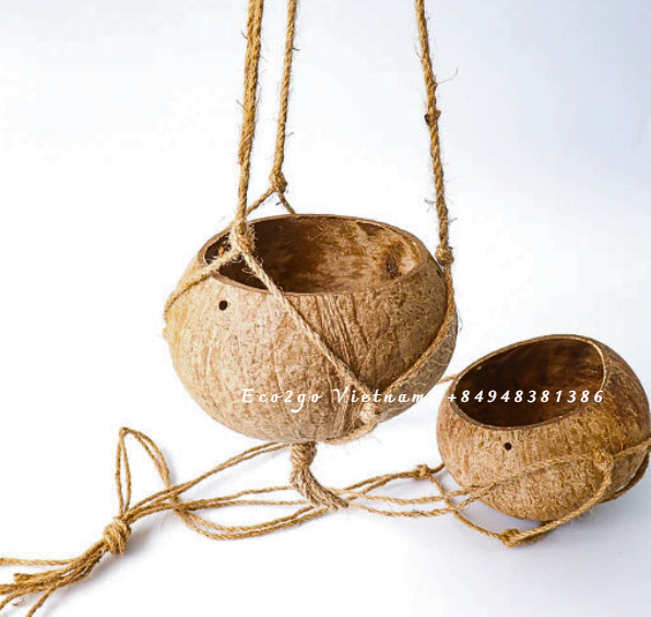 Custom Design Coconut Shell Planter Pot and Hanging Planter Pot from Eco2Go Vietnam for Home and Garden Use