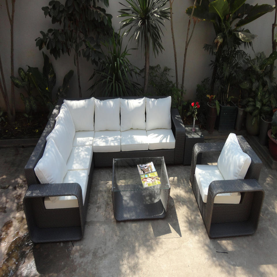 Modern Hote/Villa Living Room Furniture L-Shape Sectional Rattan Corner Sofa Set Outdoor Aluminium Rattan Sets