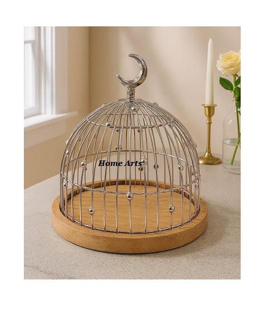 Hotel Decorative Display Pastries Cake Server With Iron Wire Design Dome Round Shape Desert Platter With Dome