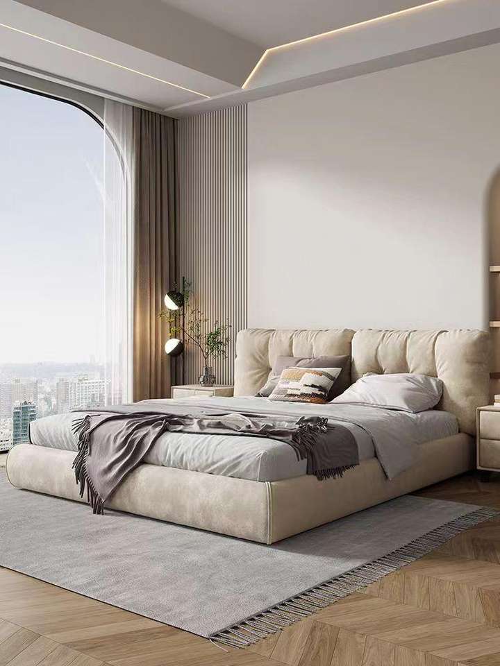 Hotel-Grade 200x220cm Velvet Bed Solid Wood Up-Holstered Masterpiece for Villas