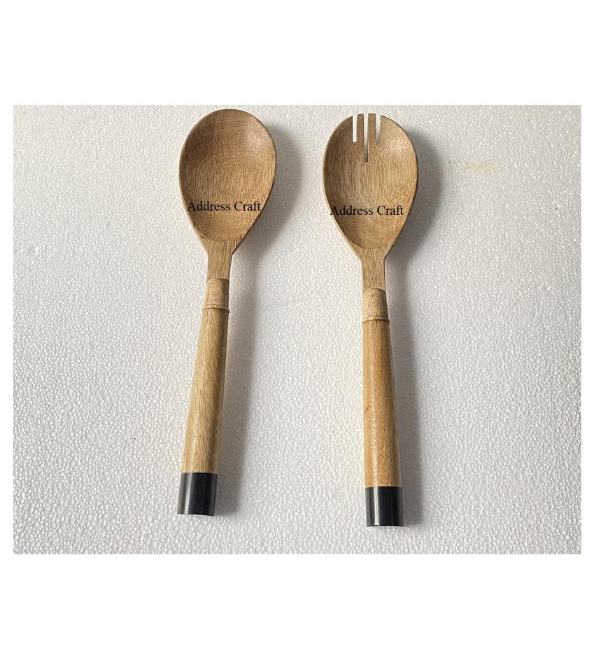 Hotel Restaurant Home Eco Friendly Mango Wood Salad Server Set Wooden Salad Tools Serving Spoon Fork Cutlery Set Resin Salad Set