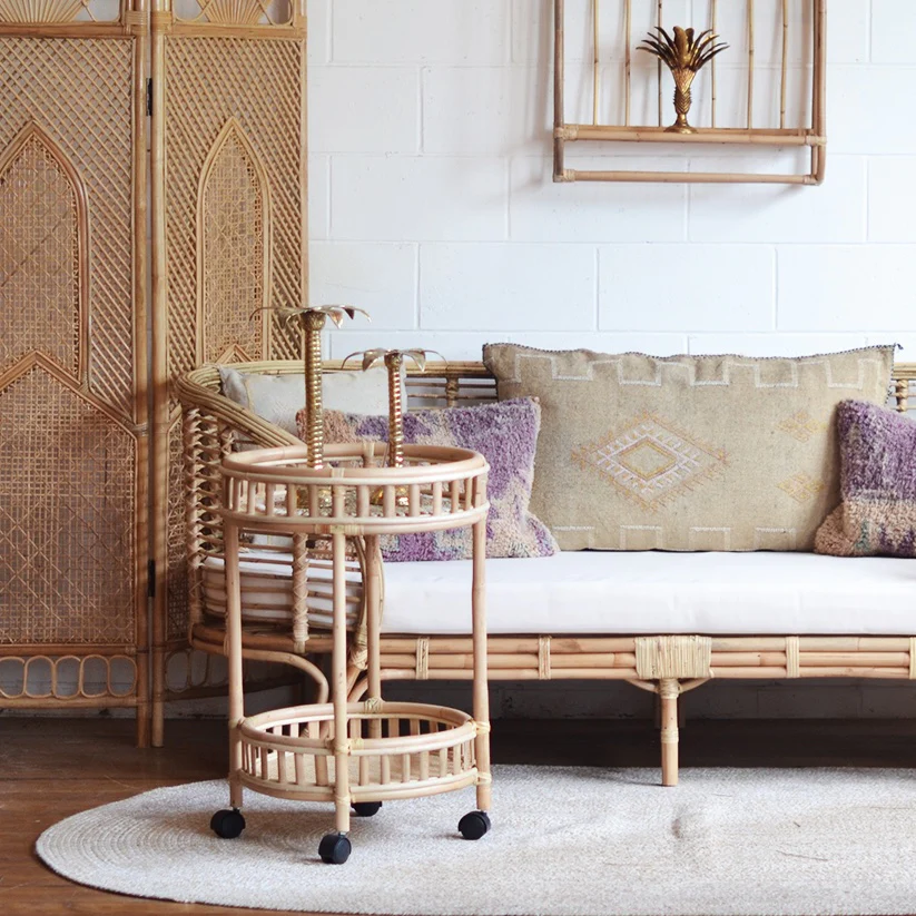 Hotel Restaurant Resort Supply Rattan bar Cart Food and Drinks Trolley Beverage Trolleys Moveable Barware Carts Drink Cart