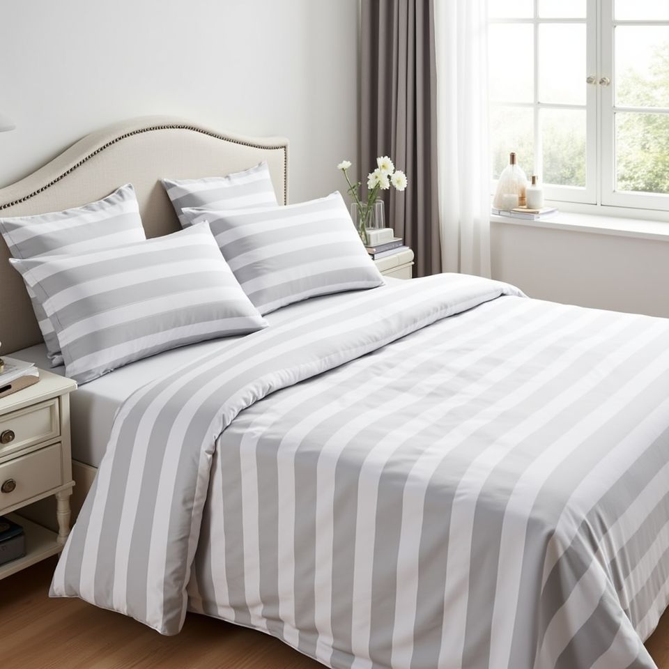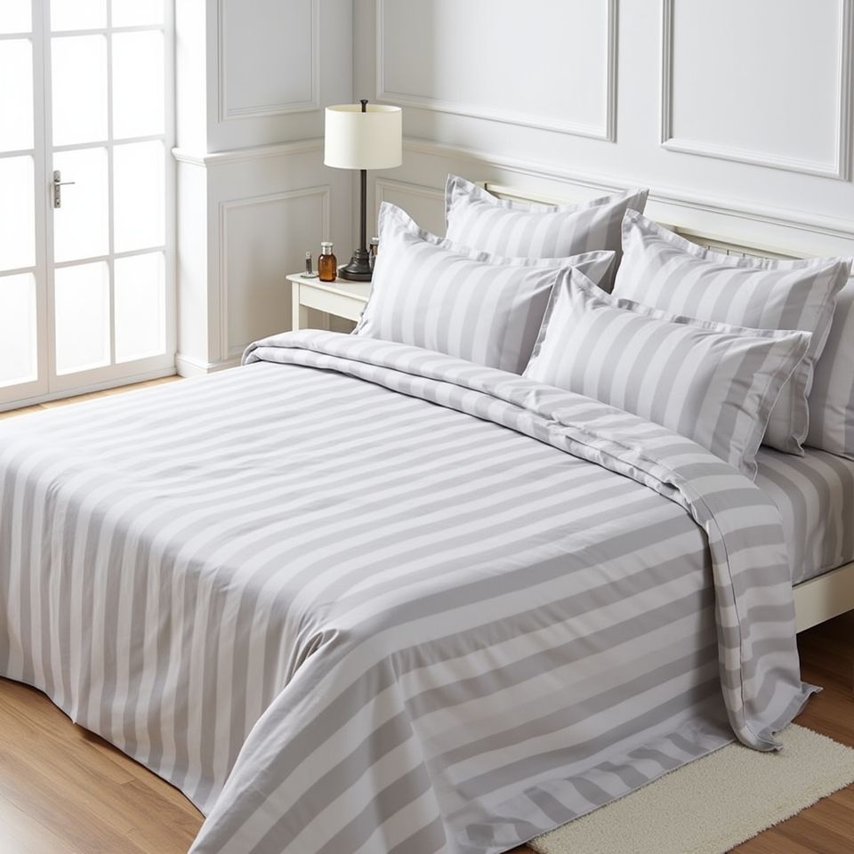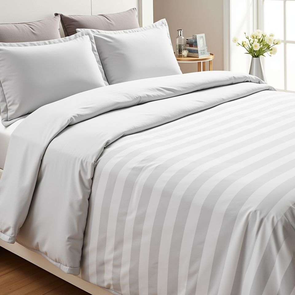 Hotel-Style 3cm Satin Stripe Double Bed Sheet 240cm X 270cm Polycotton Blend Smooth & Durable Breathable Flat Sheet