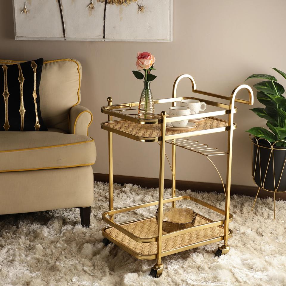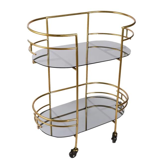 Hotels Decor Bar Cart Furniture 2 Tier Black Metal Kitchen Serving Bar ware Trolley Glass Top Storage Rack For Dining Room Cart