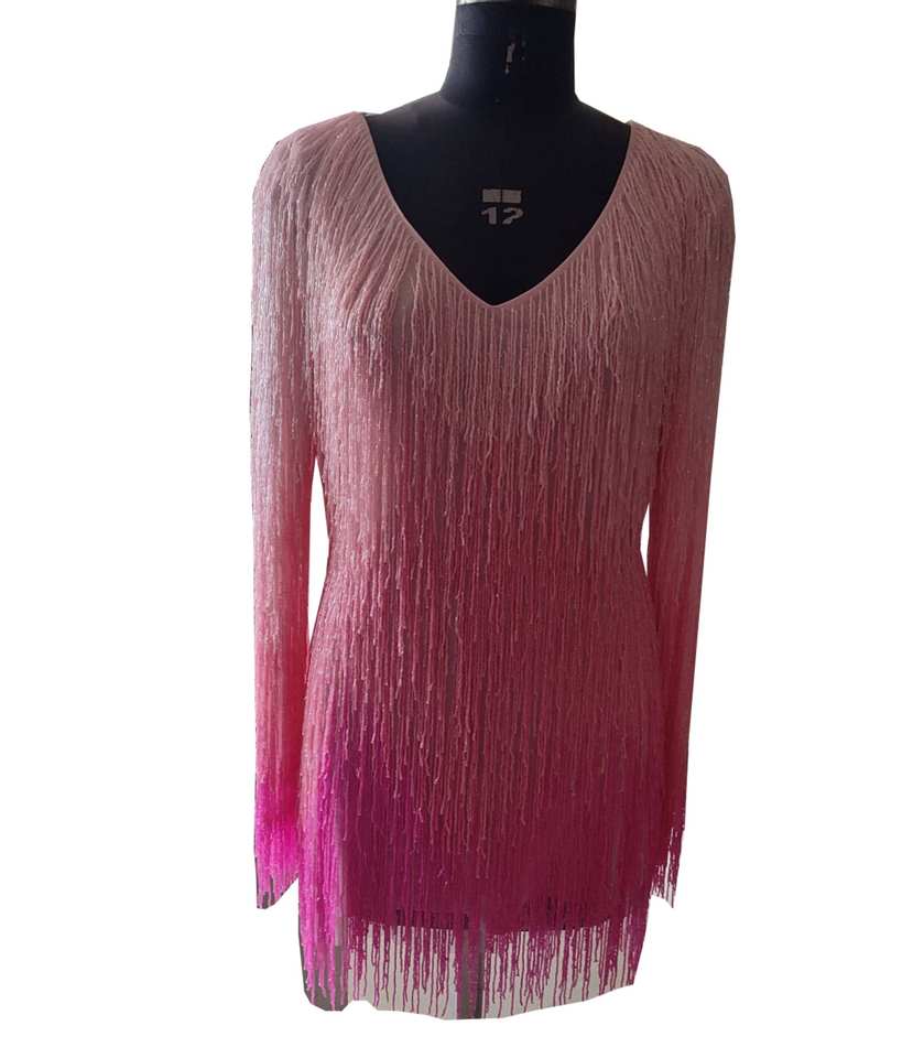 Hotest Pink Tone Fully Fringed 100% Handmade High Quality Embroidery Stylish Sexy Heavy Gradient Effect Ball Gown Prom Dresses