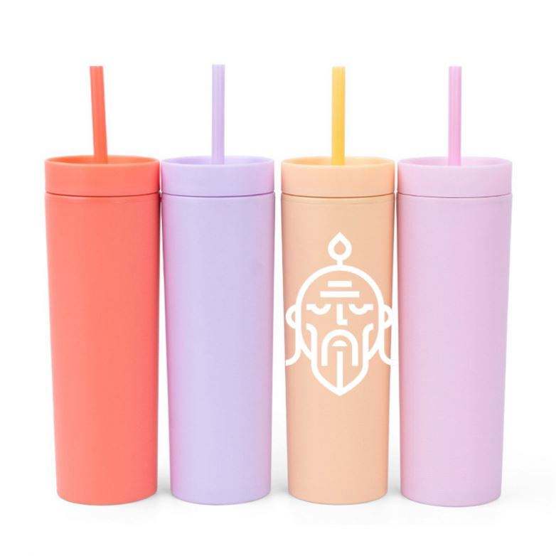 Hotsale 16Oz Plastic Double Wall Black Plain Matte Colored Acrylic Skinny Tumbler Cups With Straw