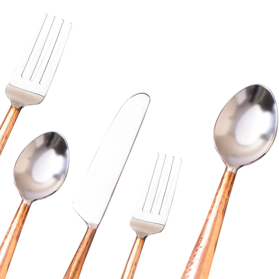 Hotseller Hammer Vintage Copper Flatware Copper & Silver Stainless Steel Cutlery Set of 5 Eco Friendly Luxury 304 Grade Cutlery