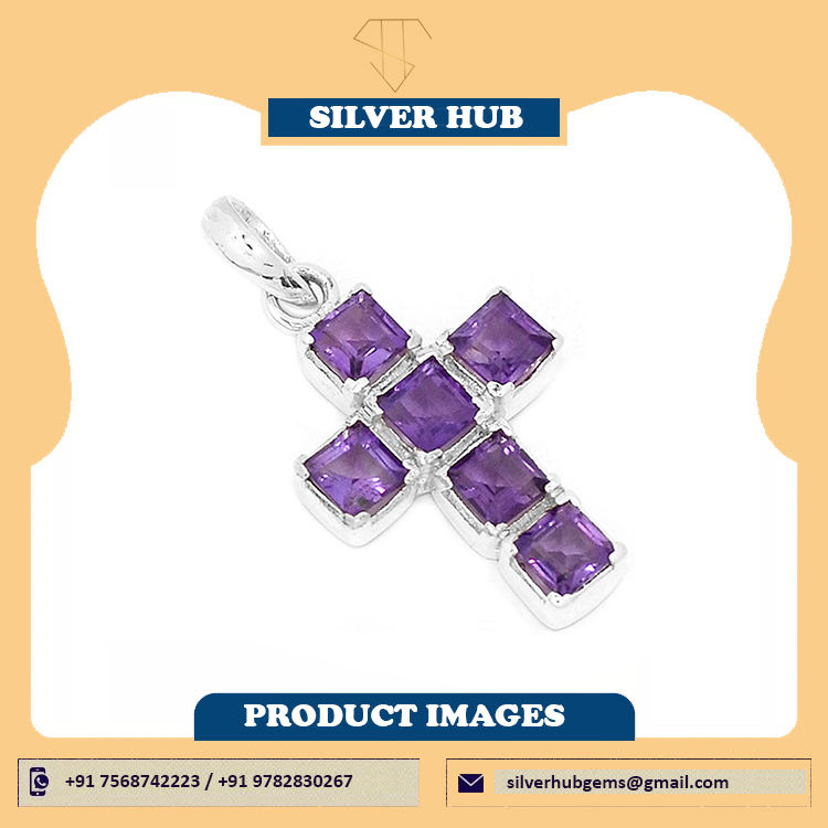 Hottest 925 Sterling Solid Silver Natural Amethyst Gemstone Handmade Pendant Jewelry