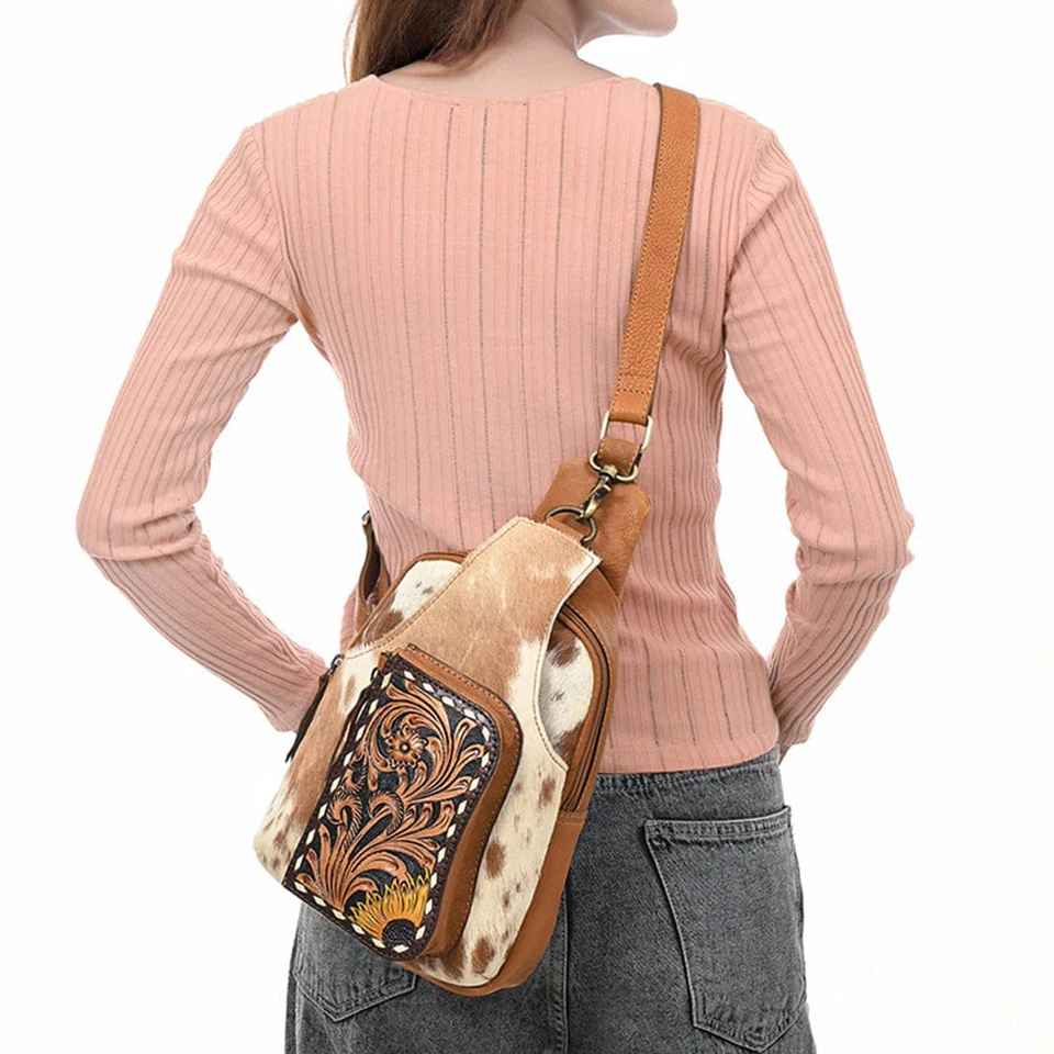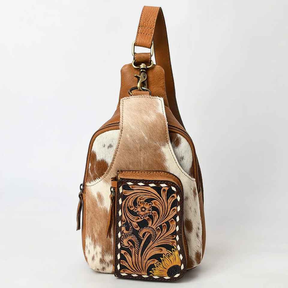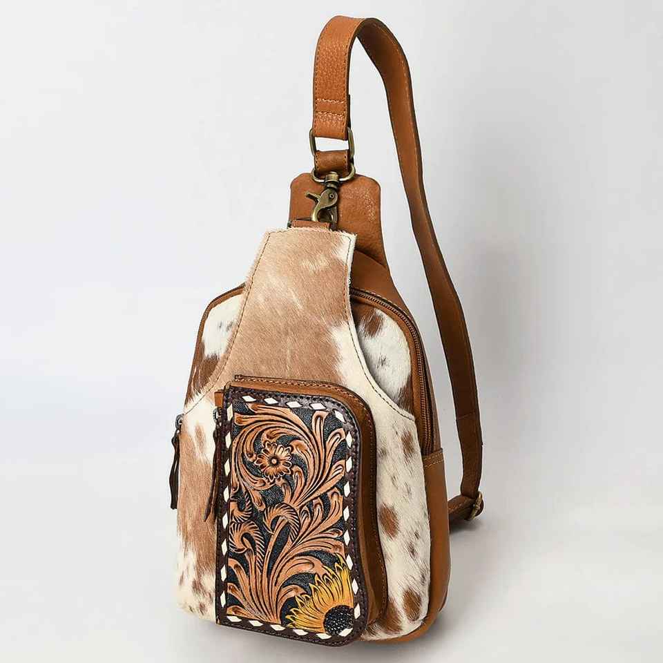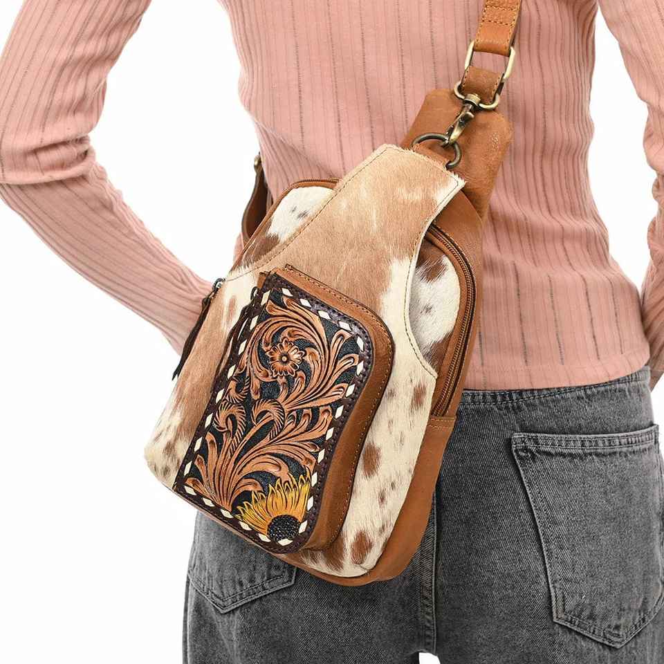 Hottest Deal Genuine Fur Leather Fanny Bag Western Saddle blanket Sling Bag High Quality Leather Sling Bag at Wholesale Price
