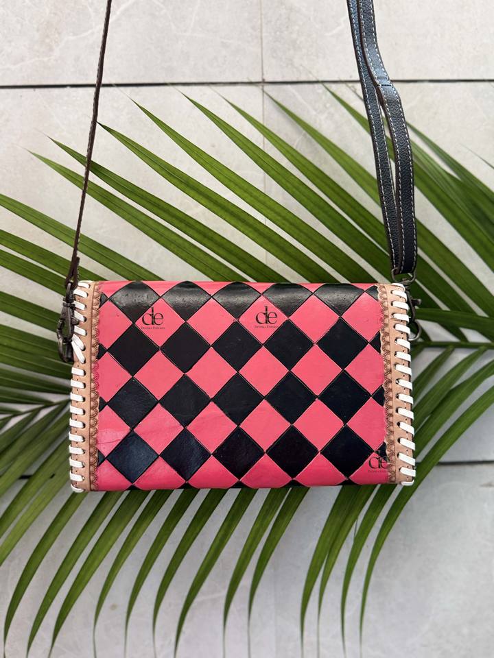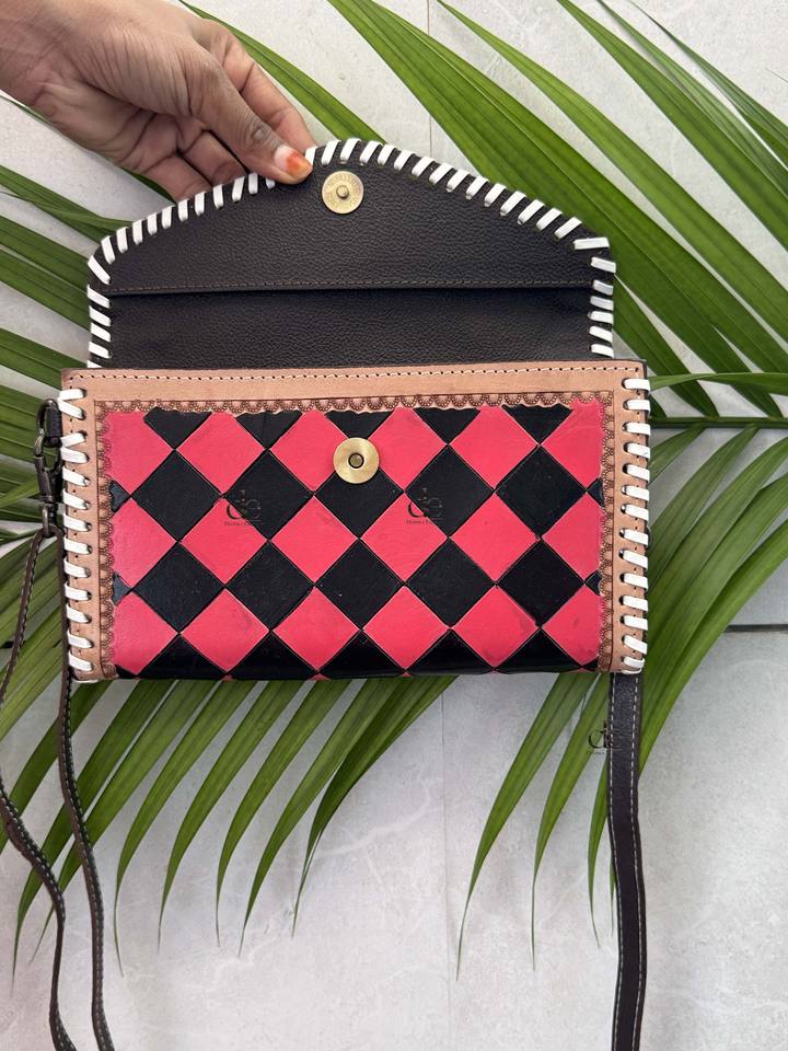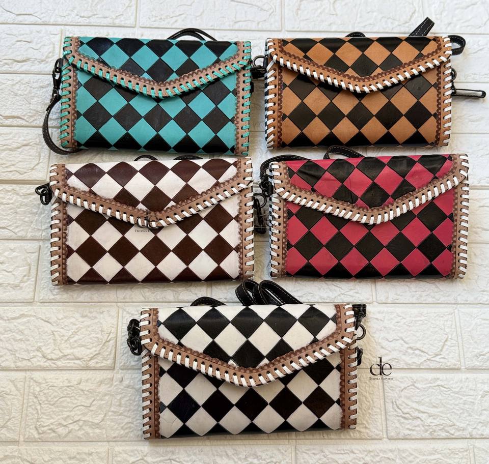 Hottest Designer Hand Tooled Leather Clutch Phone Case Stylish Genuine Leather Red Checks Pattern Multi Uses Wallets for Women