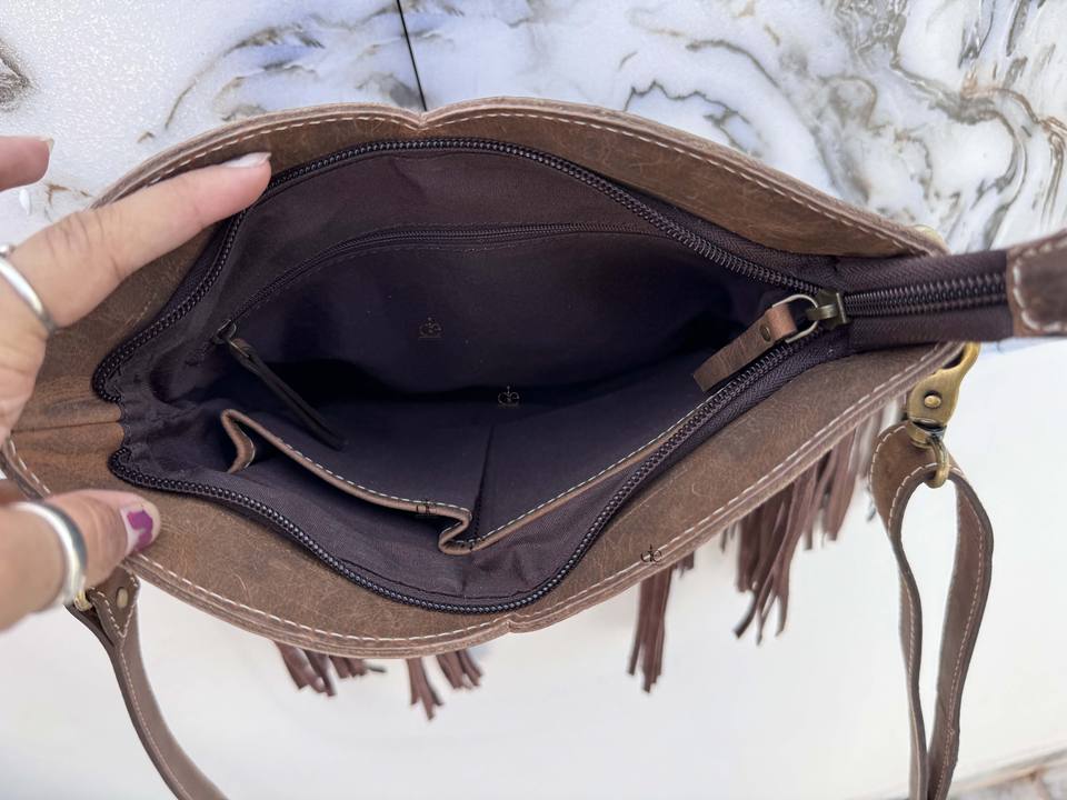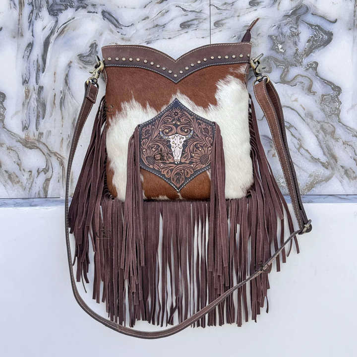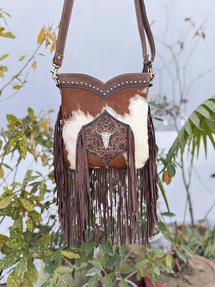 Hottest Sale Hand Tooled Leather Fringe Sling Bag Stylish Purse Cowhide Fur Leather Bags for Women's Multi Use