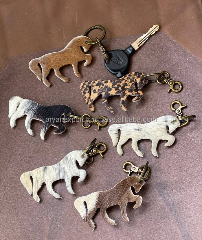 Hottest Selling Leather Key Chains Cow Hair on Leather Key Rings Leather Accessories Cute Key Chains for Women