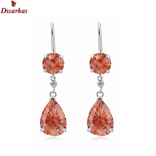 Hottest trendy classic earrings 925 sterling silver red rutile CZ gemstone earring for ladies and girl wholesale manufacture