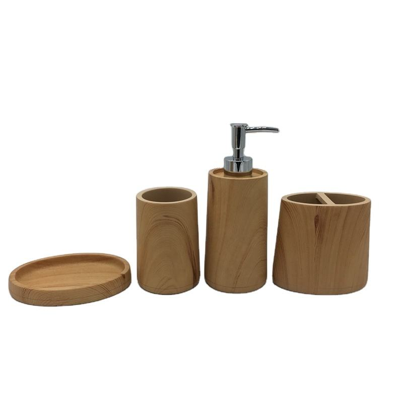 House Decoration Luxury Wooden Bamboo Resin Bathroom Accessories Bath Set for Home&Hotel