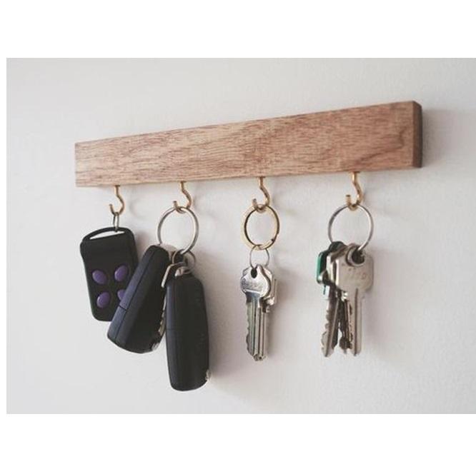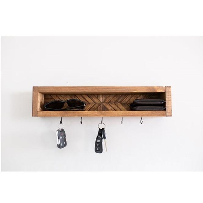 House Shape Wall-mounted Wood Key Holder with Shelf and Key Hook for Entryway Mail and Key Ring Organizer