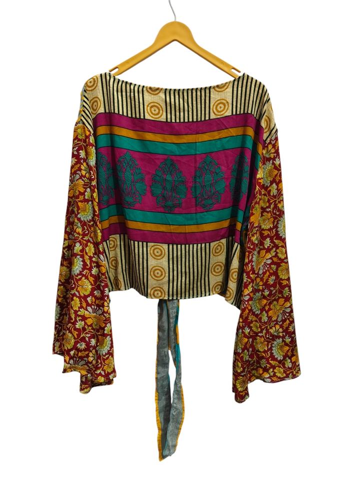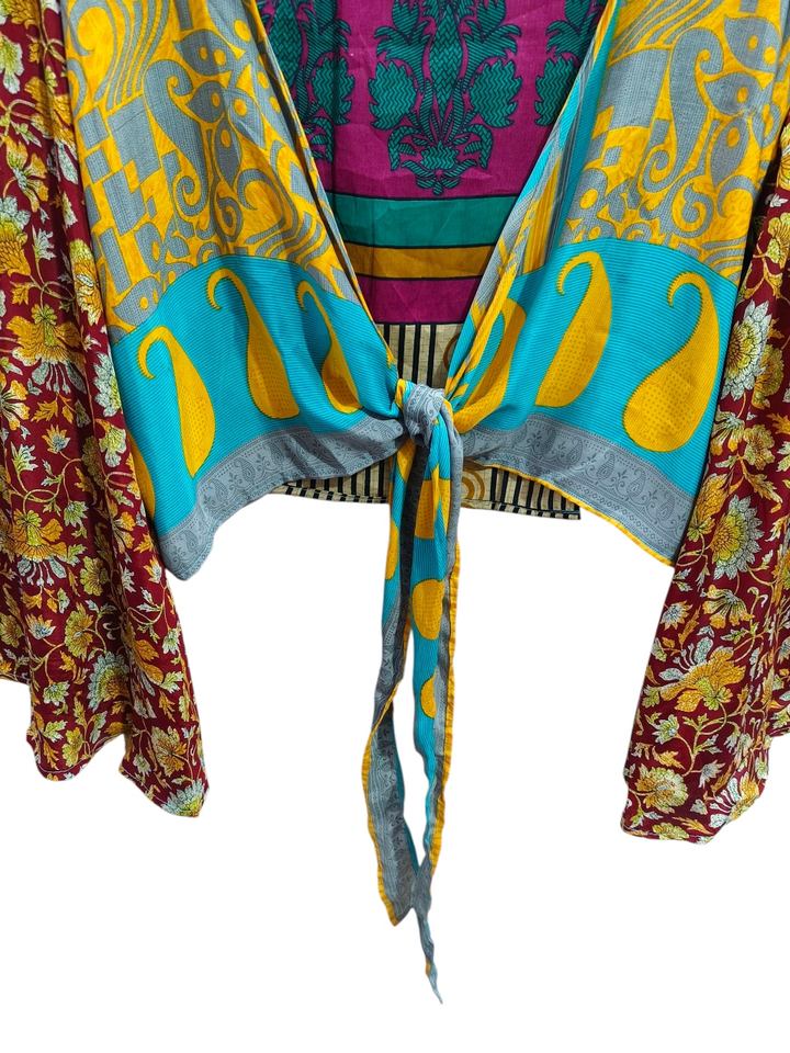 House Wear Tie Top Silk Tie Top, Handmade Indian Wrap Top, Hippie Front Tie Summer Top, Wrap Around Silk Tunic, Summer Crop Top,