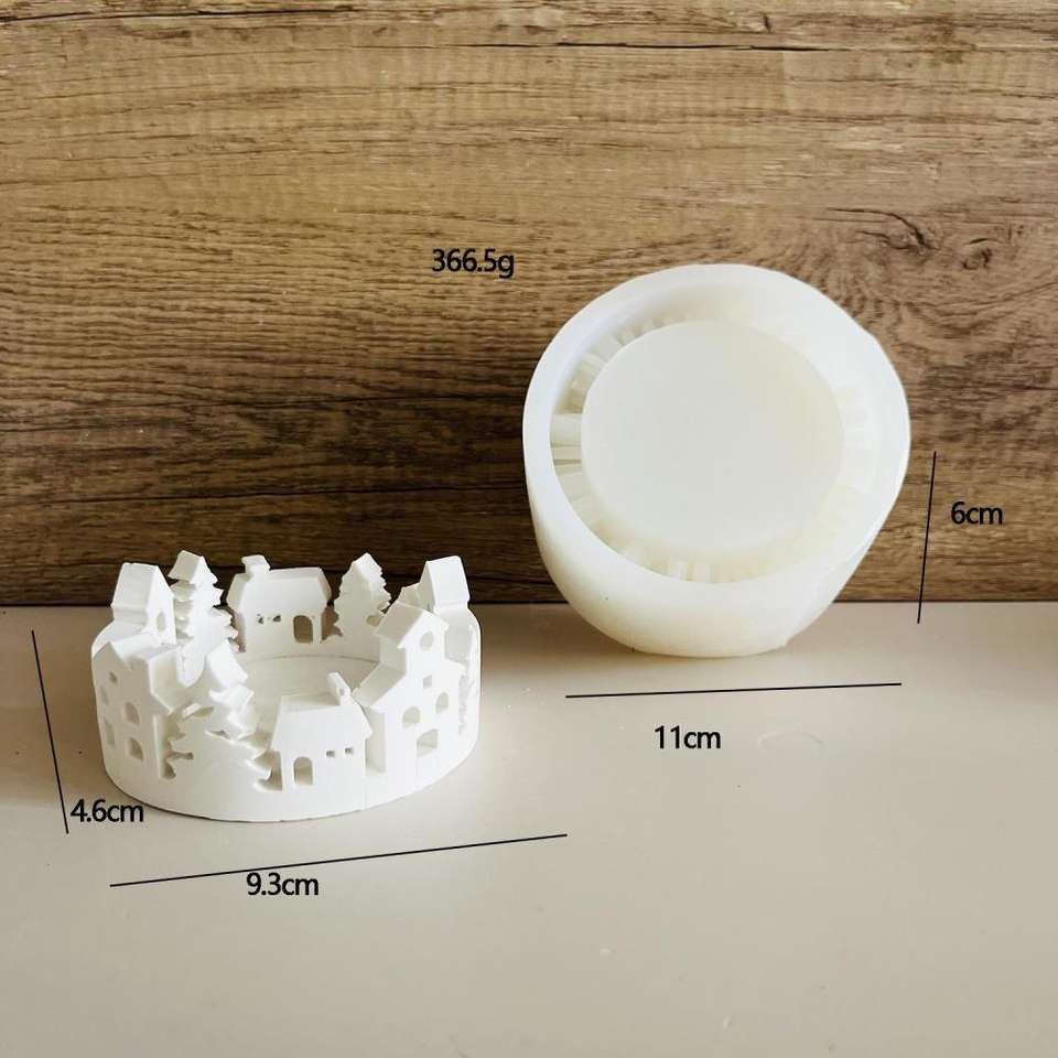 House With Tree Tea Light Candlestick Candle Base Country House Silhouette Table Decoration Candle Silicone Mold