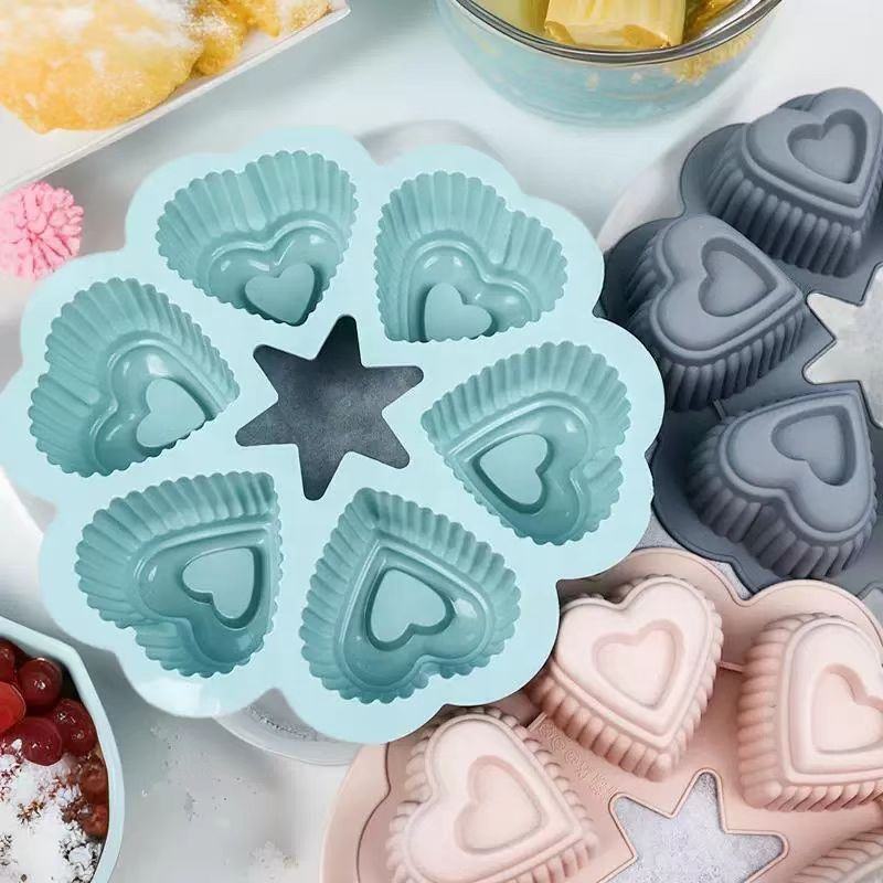 Household 6 Cavity Silicone Cake Mold Jelly Pudding Mold BPA Free Cake Baking Pan Heart Shape Silicone Baking Cake Molds