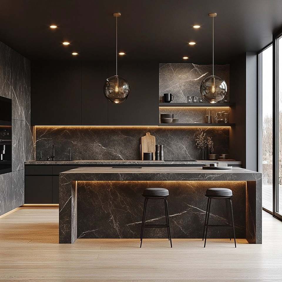 Household Custom Modern Simple Stainless Steel Kitchen Cabinets Quartz Stone Open Cabinet Decoration Custom Furniture with Light