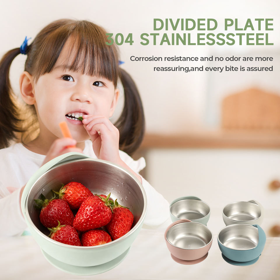 Household Dishwasher Safe 304 Stainless Steel Baby Bowls Removable Silicone Shell Toddler Snack Container
