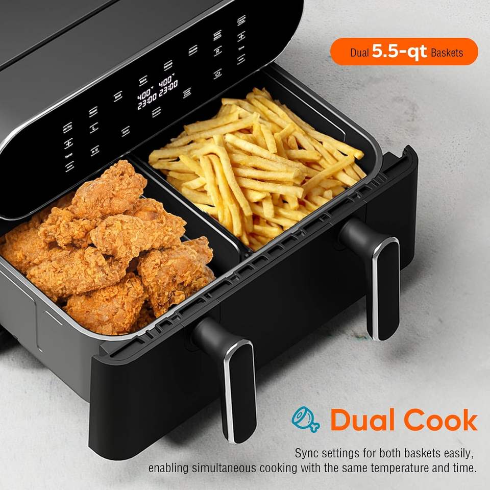 Household Double Airfryers Multi Function Electric Smart Dual Basket 9L Freidora De Aire Digital Oven Air Fryer