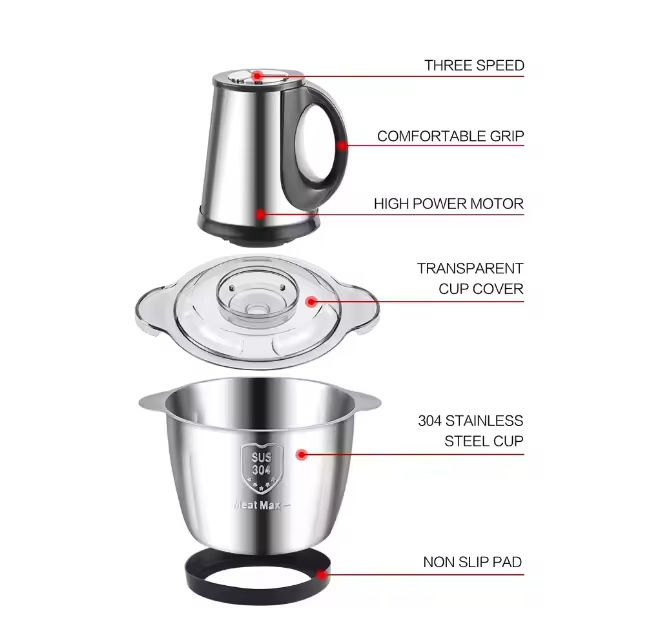 Household Electric Meat Grinder Stainless Steel 2-3L 3-Speed CE Certified Meat Chopper for Home Kitchen Use