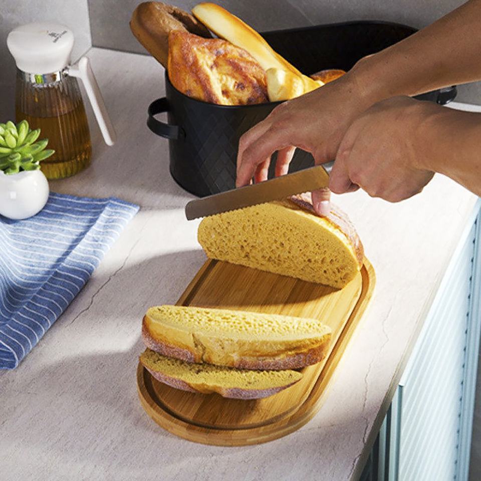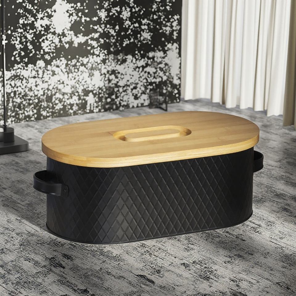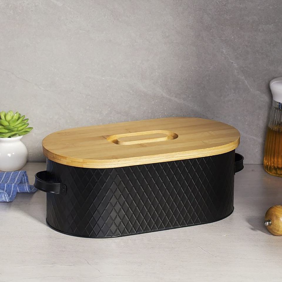 Household Kitchen Food Storage Container Iron Baking Bread Bin Organizer Bamboo Lid Metal Bread Box with Handle
