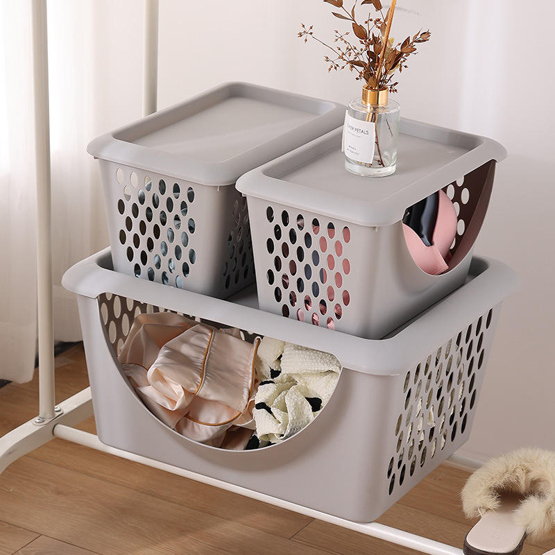 Household Laundry Basket Rectangle Stackable Clothing Organizer With Lid For Dirty Clothes Bathroom Storage Rack