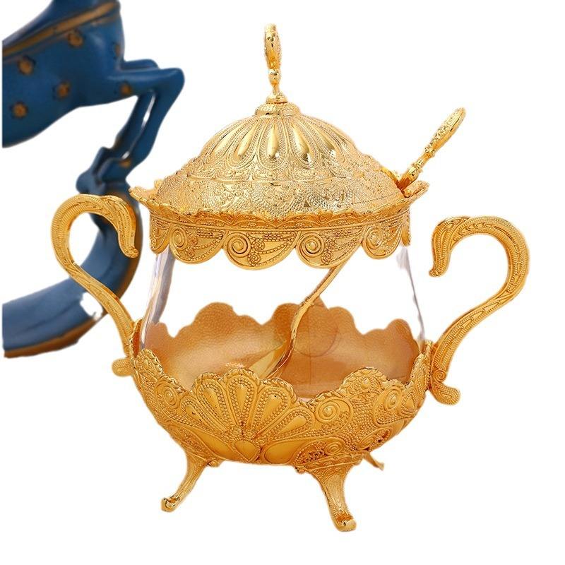 Visionary Household Spice Jar Gold Zinc Alloy Lid Large Sealed Moisture-Proof Glass Storage Jar High-End Luxurious Jar