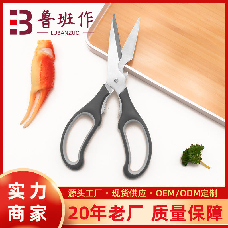 Household Stainless Steel Kitchen Scissors Multi Functional For Vegetables Meat Fish Bone Cutting Grey Straight Head