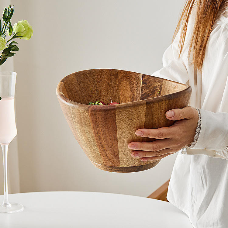 Houselin Acacia Solid Wood Polished Lightweight Fruit Salad Mixing Bowl Set Catering Serving Bowl Antique MULTI CRAFT