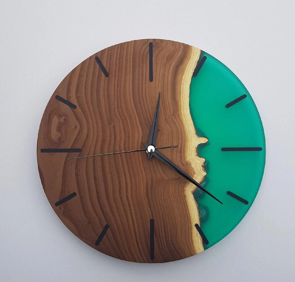 Housewarming Gift Wooden Epoxy Resin Wall Clock Attractive Wood Resin Wall Clock for Home Living Room Decorate Item