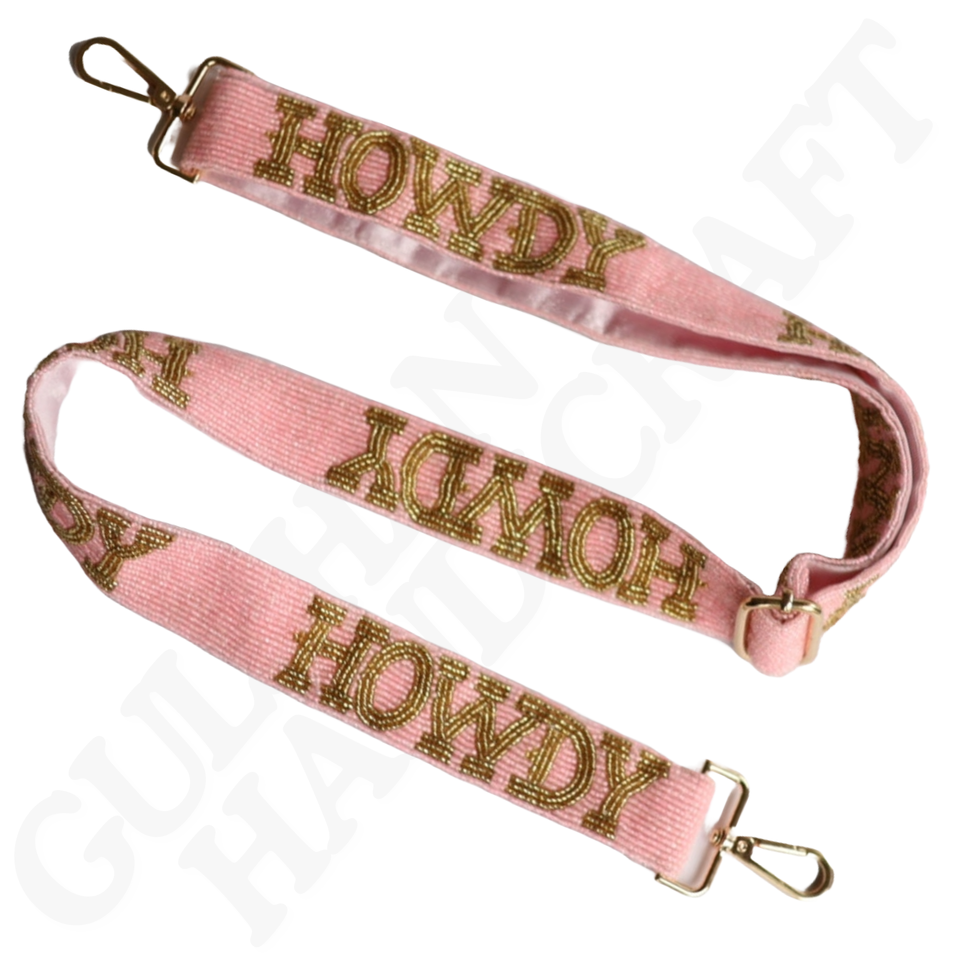 Howdy Texas-Themed Handmade Seed Bead Embroidery Crafts Adjustable Cotton Purse Shoulder Strap Cross-Stitching Needlework