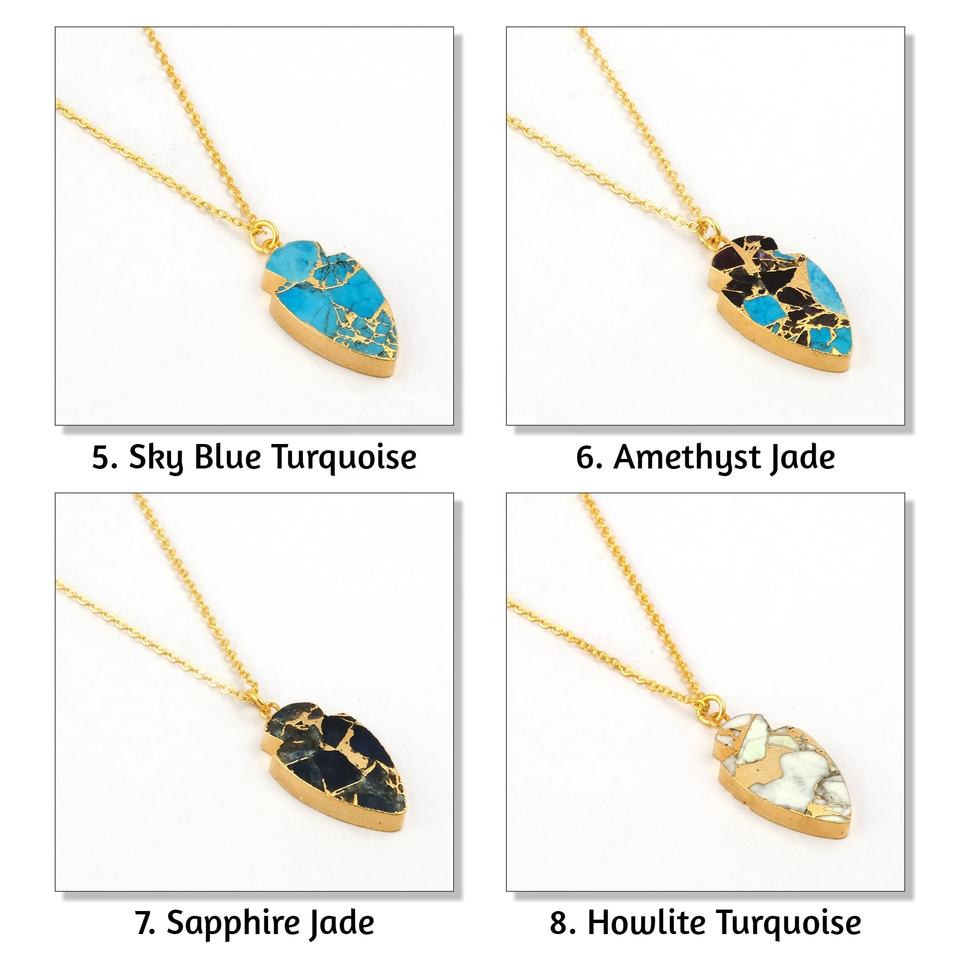 Hand Designed Howlite Gemstone Pendant Necklace with Gold Plated Arrowhead Shape Link Chain Jewelry for Wedding & Gift