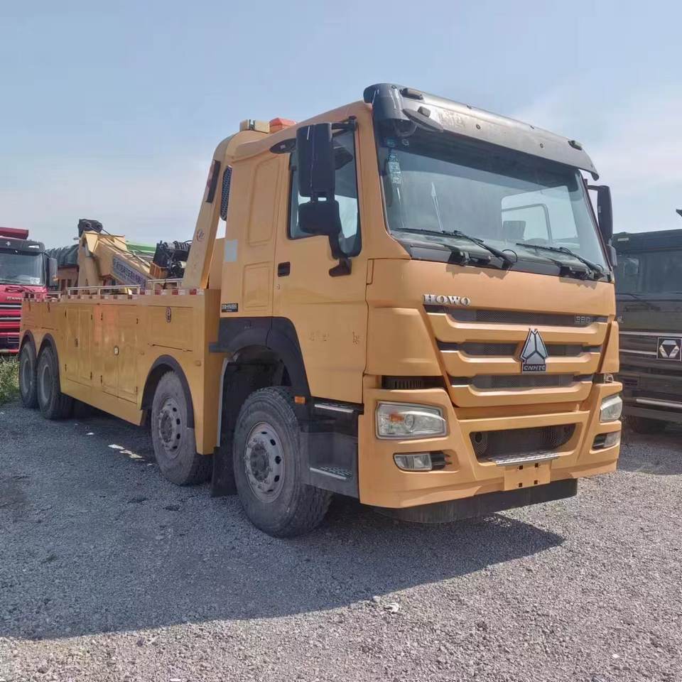 Howo yellow wrecker roadside assistance vehicle flatbed trailer