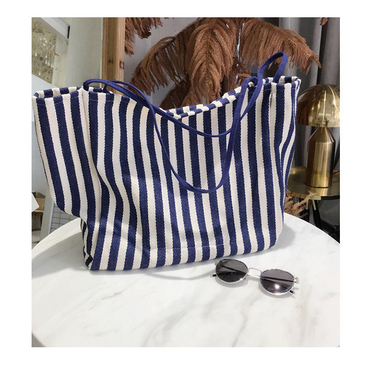 Hua Cheng T01 Large Capacity Korean Classic Retro Striped Shoulder Bag Customized Closure Reusable Fashion Design Canvas Travel