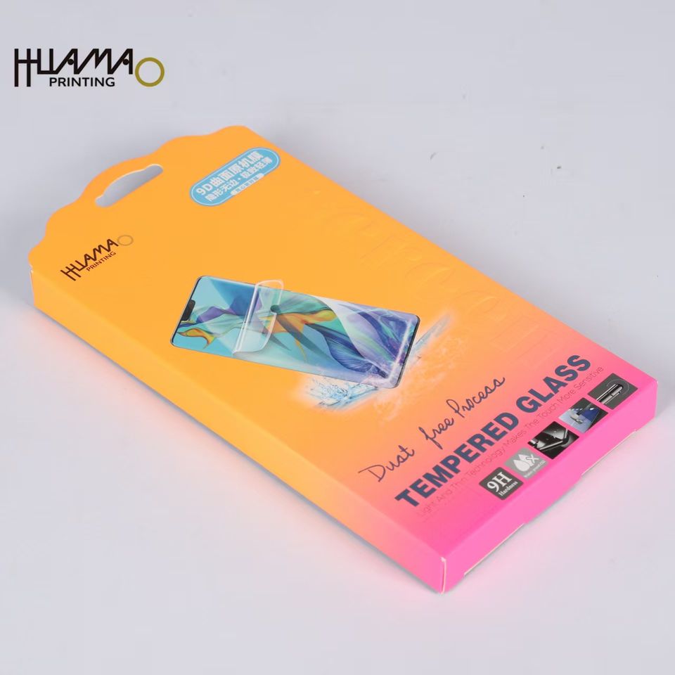 Huamao High Quality Phone Film box With Hang Hook Eco-friendly box Custom LOGO embossing Coated Paper Foldable packaging box