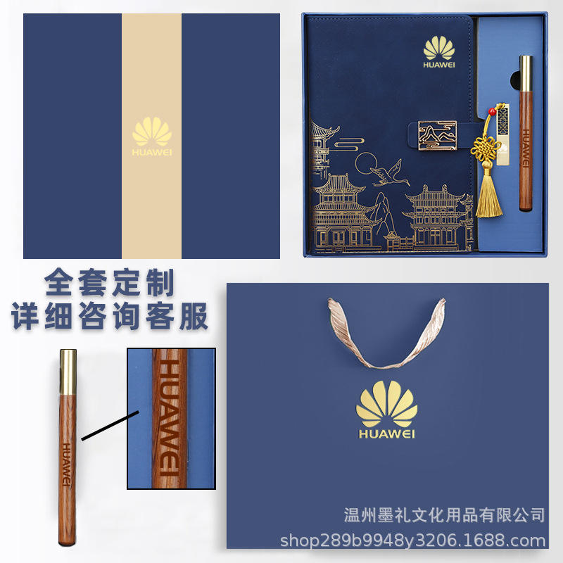 Huawei National Style Leather Notebook Gift Set With USB Flash Drive Custom Logo Printing Business Office Corporate Gift