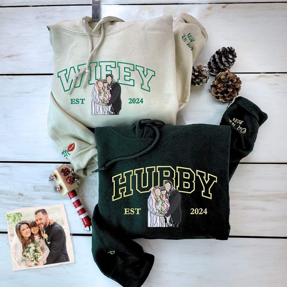 Hubby Wifey Embroidered Sweatshirt Hoodie Personalized 3D Pattern Winter Autumn Knitted Fabric Sequined Gift for Summer Spring