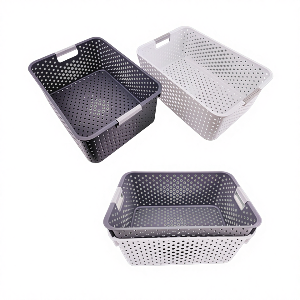 Hudson Large Square Rattan Storage Basket 14.2"*10"*5.7" Plastic Weaving Style Home Kitchen Use Packaged Cartons Model HH-4008