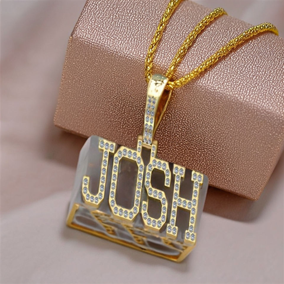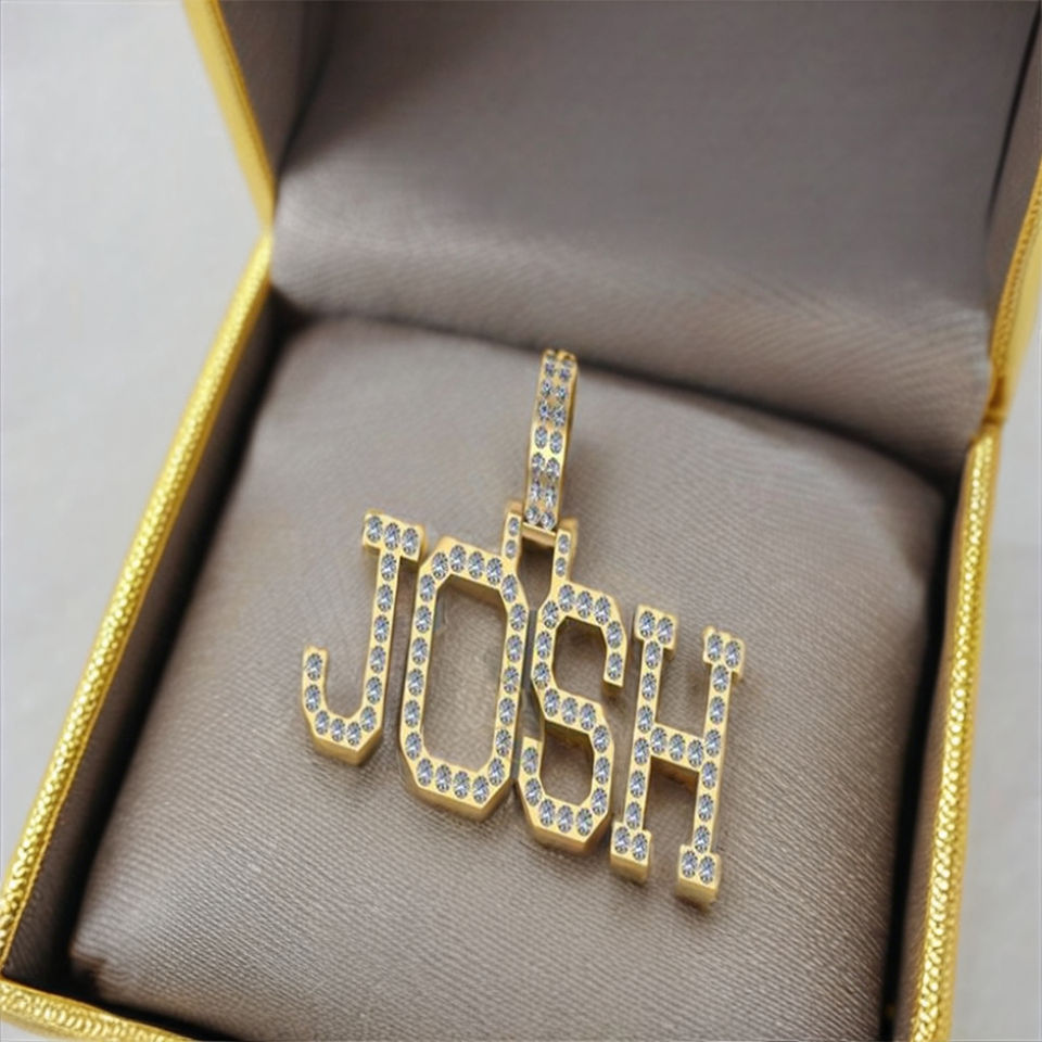 925 Silver Gold Plated Custom iced Cursive Initial Letter Lab Grown Diamond Personalized Chunky Charm Pendant Necklace Gift idea