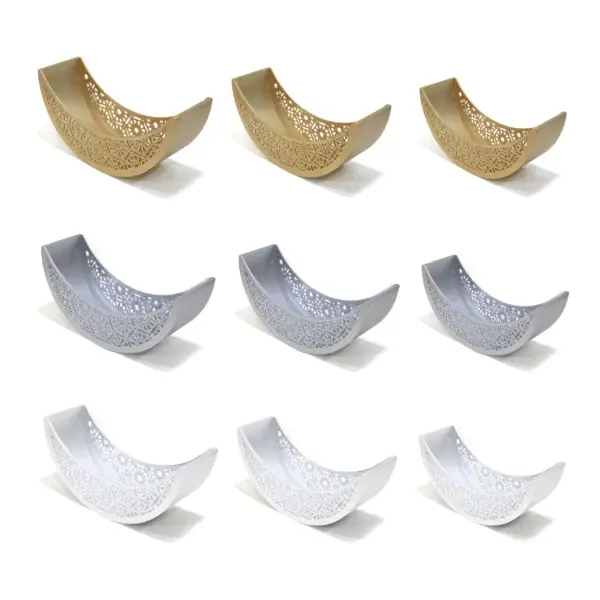 Huiran Modern Style Moon Shaped Metal Tray Elegant Ramadan Plate for Fruit Cake Display for Eid Mubarak Party Decorations